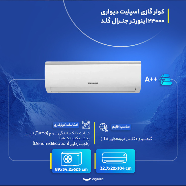 کولر گازی اسپلیت دیواری 24000 اینورتر جنرال گلد مدل GG-MS24000 PLATINUM