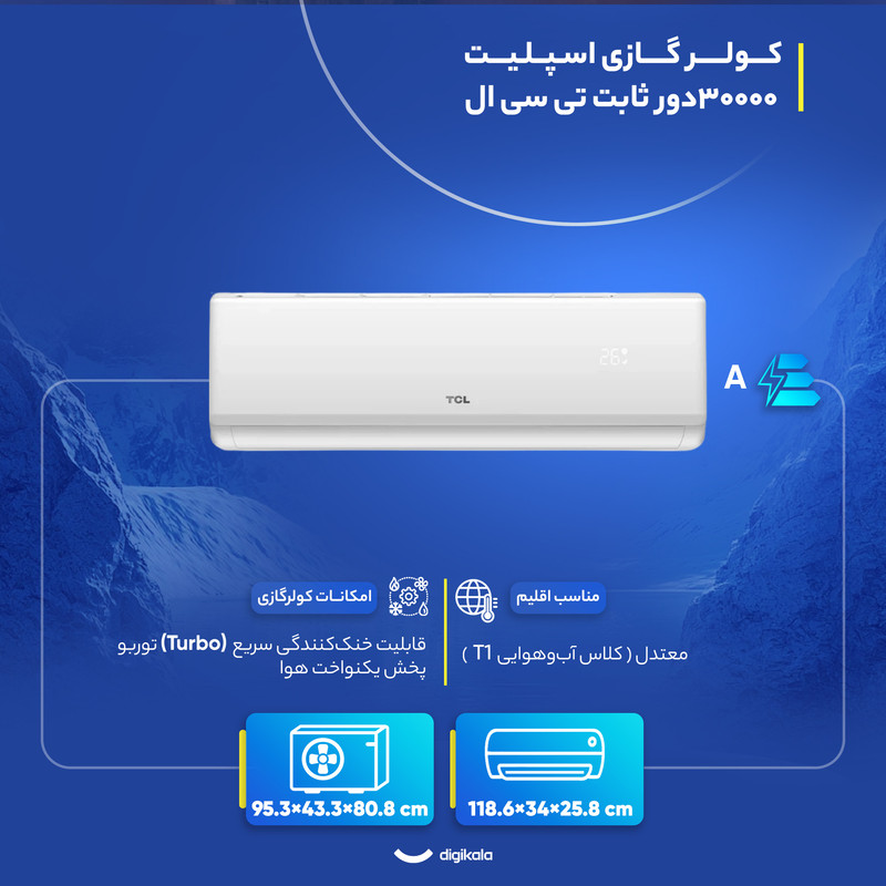 نمایشگر دیجیتال روی ریموت , کنترل کامل تنظیمات دما و فن , قابلیت تنظیم حالت توربو از ریموت
