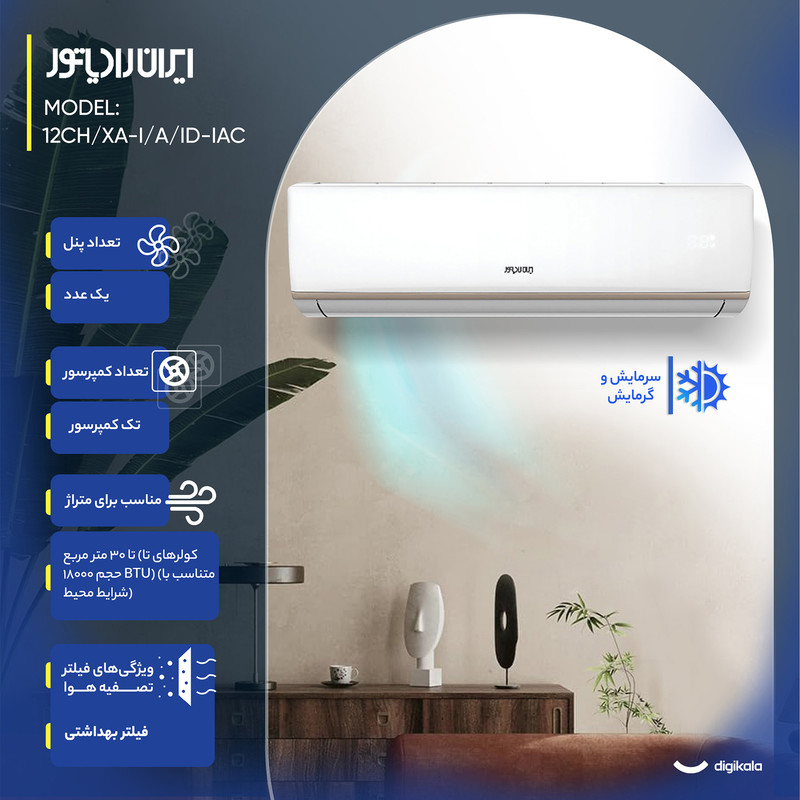 کولر گازی اسپلیت دیواری 12000 اینورتر ایران رادیاتور مدل IAC-12CH/XA-I/A/ID