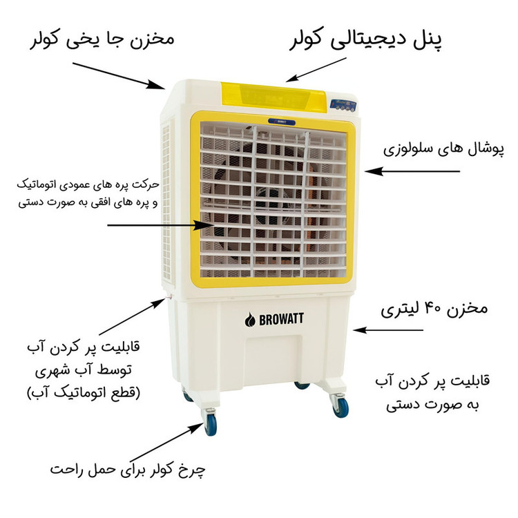 برای استفاده از خدمات پس از فروش، بعد از خرید با شرکت بروات تماس بگیرید تا اطلاعات شما و کولر ثبت گردد. نیازی به نصب توسط سرویسکار نمی باشد.