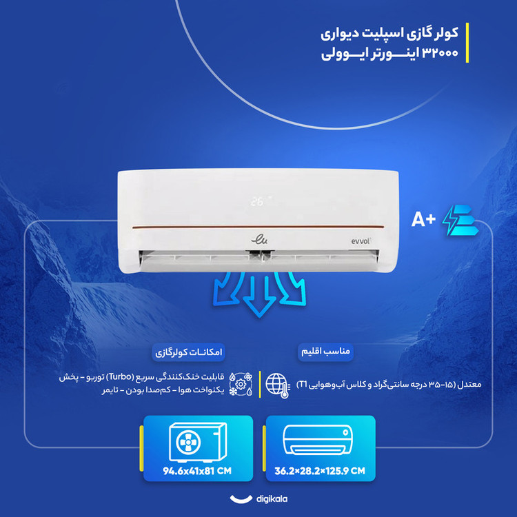 تنظیم تایمر از طریق ریموت , تنظیم جهت پرتاب باد از راه دور , قابلیت تنظیم حالت توربو از ریموت , کنترل کامل تنظیمات دما و فن