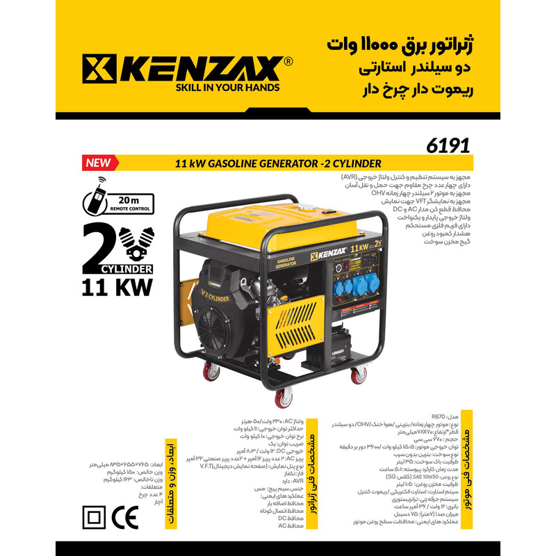 موتور برق بنزینی 21 اسب بخار کنزاکس مدل R670 دو سیلندر 11000 وات کد 6191