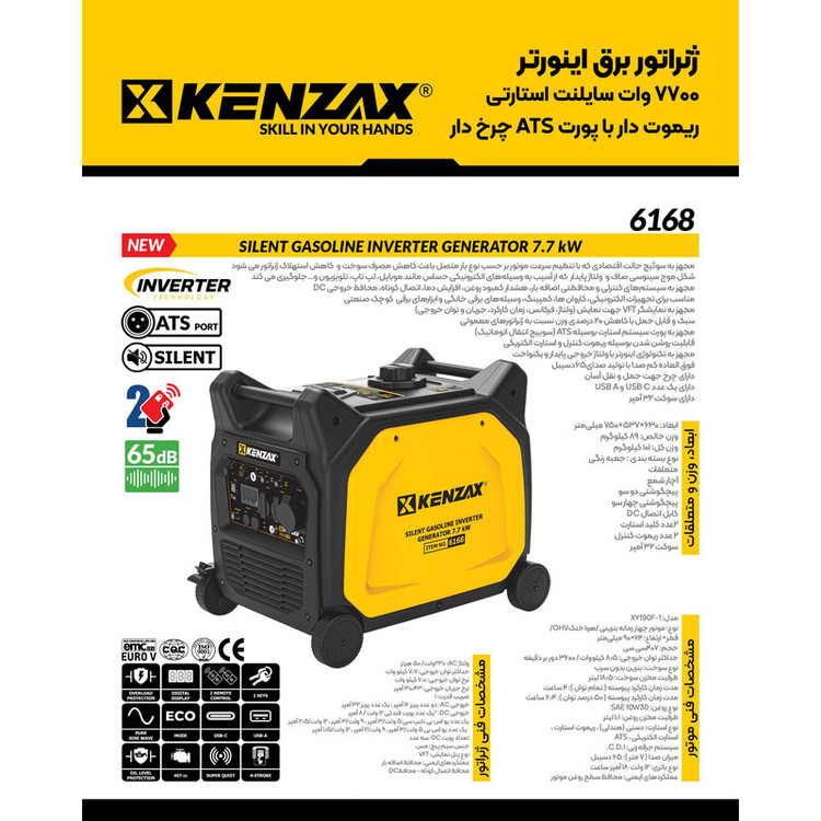 موتور برق بنزینی 12 اسب بخار کنزاکس مدل XY190F-1 سایلنت 7700 وات کد 6168