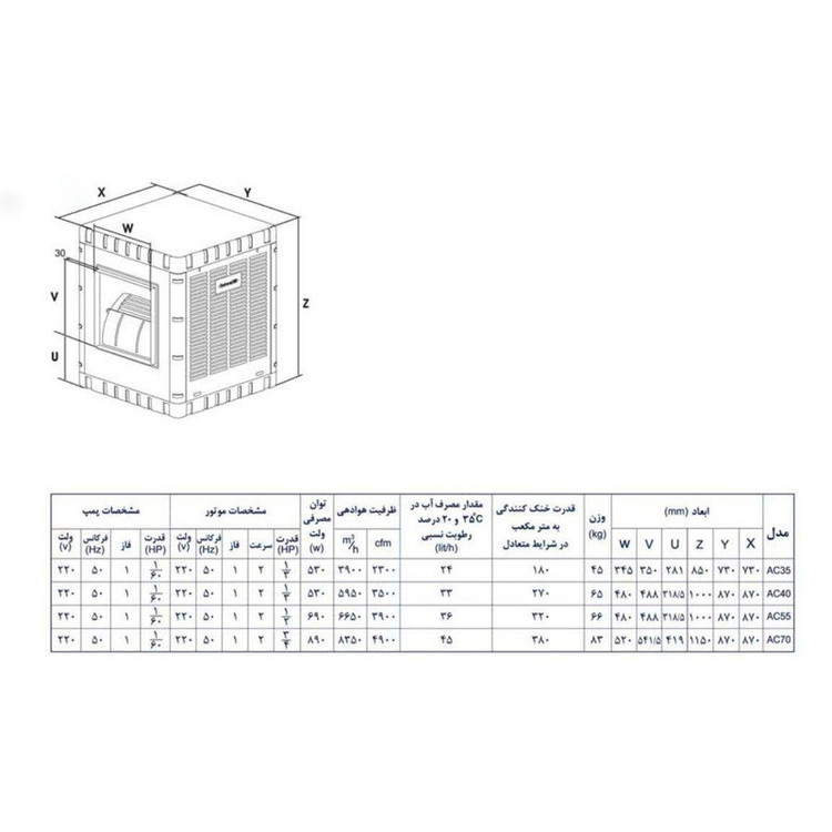 مناسب برای متراژ: بین ۵۰ تا ۷۰ متر مربع (کولرهای با حجم ۳۰۰۰ تا ۳۵۰۰) (متناسب با شرایط محیط)